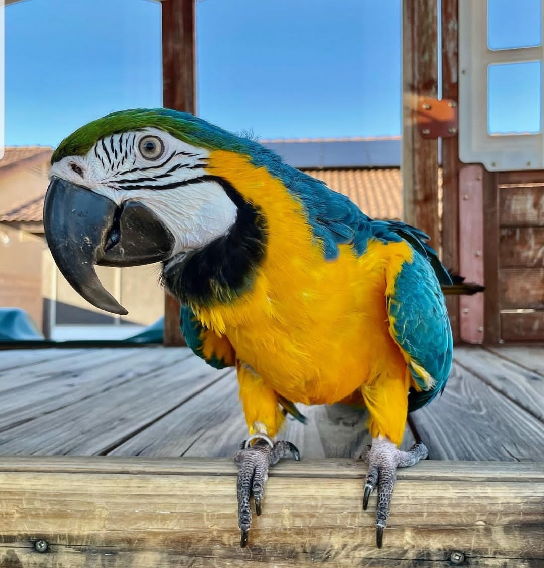 Macaws like Dexter are known for their intelligence, social nature, and vibrant colors. His young age allows him to adapt quickly to a new home while developing a strong bond with his caregivers. Whether you are an experienced parrot owner or a dedicated family, Dexter promises to bring years of entertainment, affection, and joy.