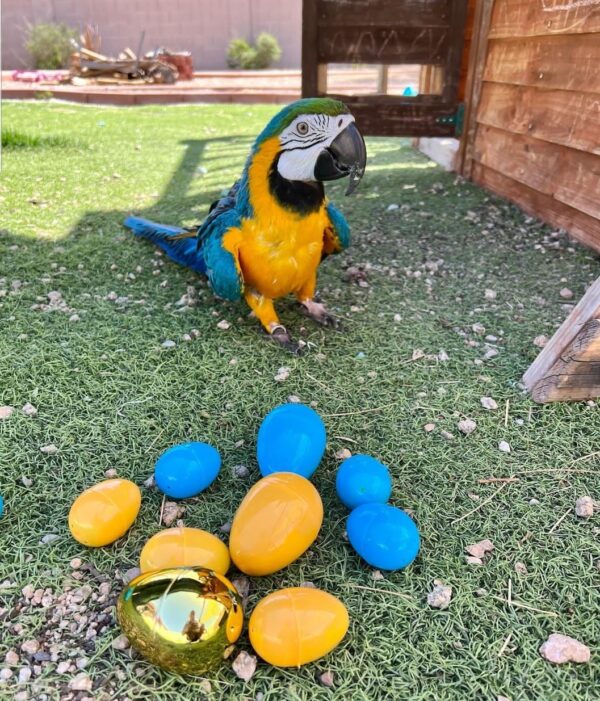 Dexter comes from a bloodline of champion parrots, making him an exceptional choice for anyone looking for a parrot with both beauty and temperament. He is a perfect blend of social intelligence, playfulness, and affectionate behavior.