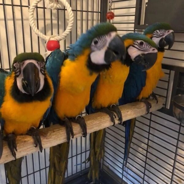 Baby Blue & Gold Macaw Pair for Sale (2 Male & 3 Female – 3 Months Old)