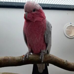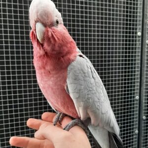 This Galah Cockatoo is naturally playful, gentle, and intelligent. She enjoys being handled, loves toys, and adores spending time outside her cage. With consistent interaction, she will continue developing her vocabulary and mimicry skills, bringing joy and entertainment to her family.